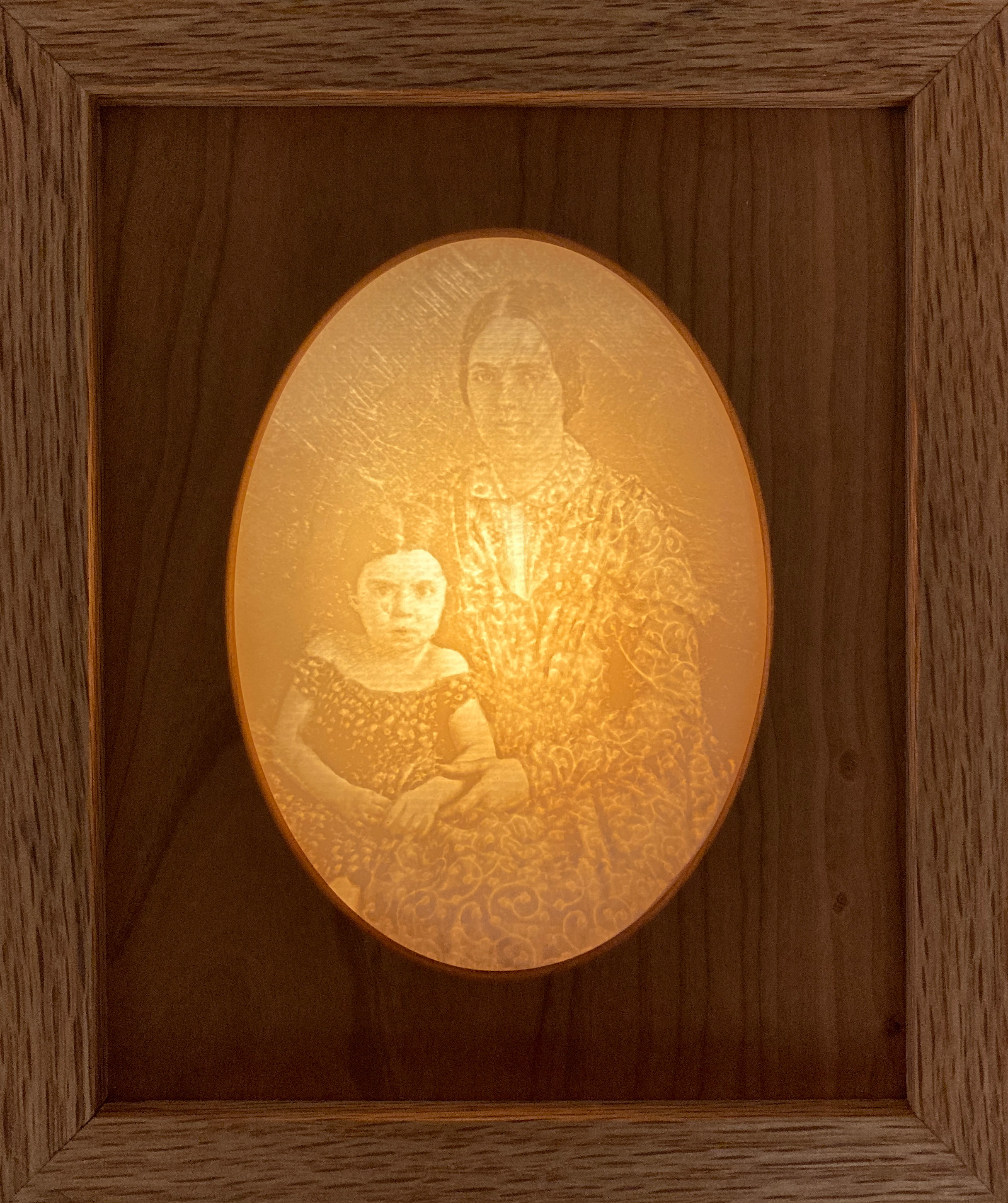 In my research, Helia has become another star in a constellation of reckoning with the realities of existing within the United States. I imagine the glossy surface of the daguerreotype as a mirror for generations of children who have inherited complicated legacies. While this work often takes an autobiographical vantage point, the specificity of certain objects and images collected here are translations of memory and desire, both real and imagined. The work represents a gathering of joyful moments along with heartbreaking ones, that familiar mixture that many Americans feel.