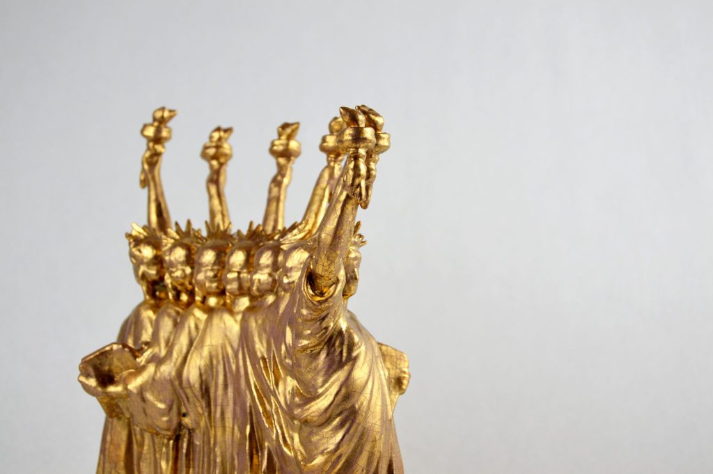 About Face 3D printed ceramic, glaze, gold luster. 8x4x8″2018 Share this:Tweet Click to email a link to a friend (Opens in new window) Email